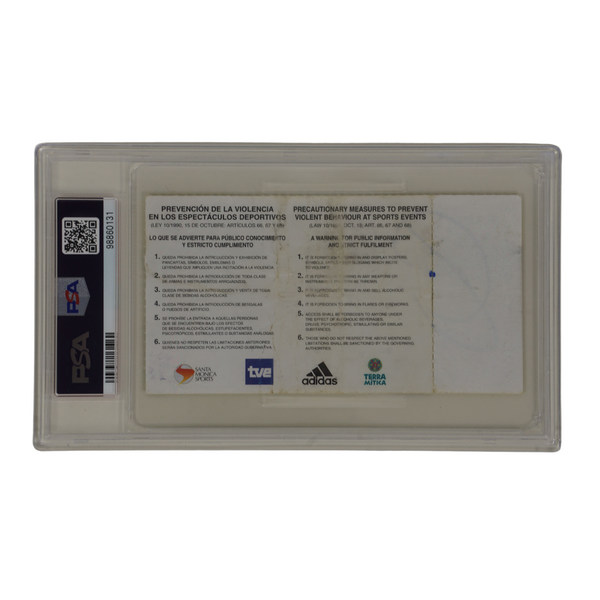 This is a Xavi Signed 2000 Spain National Team Debut Match Ticket - PSA 1.5. THE ITEM IN THE PICTURE IS A STOCK IMAGE. YOU WILL RECEIVE AN IDENTICAL ITEM OF EQUAL QUALITY. ALL JERSEYS ARE SIZE LARGE. Every item of signed memorabilia we sell is official and of the highest quality. We pride ourselves on providing sports fans with the most exclusive signed memorabilia on the market. We are an industry leading signed memorabilia company who can guarantee 100% authenticity on every signature we sell. The item you receive will be identical to the one you are seeing in the stock pictures. This includes the item, the authentication company, signature color and signature placement. We take pride in ensuring the authenticity of all our items. With unwavering commitment, we guarantee that every signature is 100% authentic. Every item of signed memorabilia comes with a scannable barcode which takes you to the certificate of authenticity on the company's website. These industry leading authentication companies include Beckett Authentication Services, James Spencer Authentication Services and Professional Sports Authentication Services.