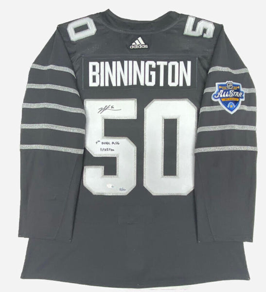 This jersey has been personally hand-signed by Jordan Binnington with the inscription "1st NHL ASG 1/25/20." It is officially licensed by the National Hockey League and comes with an individually numbered, tamper-evident hologram from Fanatics Authentic. To ensure authenticity, the hologram can be reviewed online. This process helps to ensure that the product purchased is authentic and eliminates any possibility of duplication or fraud.This jersey is limited to just 20 and you are bidding on a random number from the edition.Made in the USAPersonally Autographed by Jordan BinningtonFanatics Authentic Presented by Mounted MemoriesIncludes tamper-evident hologram to ensure authenticityOfficially licensed This product is guaranteed authentic and includes a Fanatics Certificate of Authenticity and an accompanying tamper-evident Fanatics Hologram.