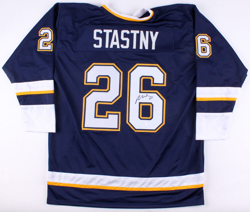 Custom on-ice style jersey with everything sewn on, size XL. Jersey has been hand-signed in black felt-tip pen by Paul Stastny. The lot / autograph(s) includes an official James Spence Authentication (JSA) hologram for authenticity purposes.Authentication: JSA Hologram