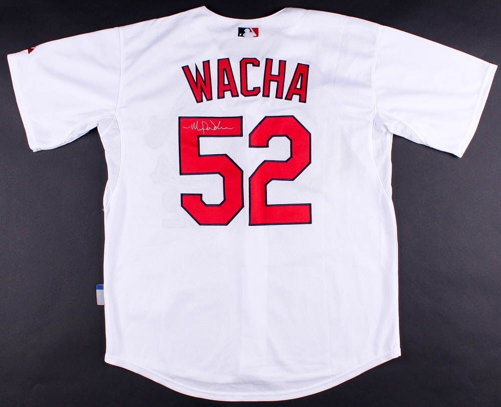 Custom on-field style jersey. Everything sewn on, size 48. Hand-signed in silver paint-pen by Michael Wacha (Cardinals). The autograph includes an Official Icons Hologram and COA for authenticity purposes.Authentication: Icons Hologram & COA