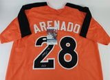 This autographed jersey has been personally hand-signed by Nolan Arenado of the St. Louis Cardinals.This autograph is certified by James Spence Authentication (JSA). It comes with the numbered hologram and matching Certificate of Authenticity.Custom on-field style jerseys are a more affordable option for autograph seekers. These jerseys do not have any brand name or tags and are made in the Philippines. They feature stitched on names and numbers and are made to look very similar to the on-field jerseys that the players wear. These custom jerseys are very commonly used in the memorabilia industry.