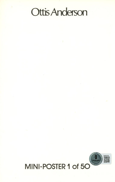 The number in the listing title is just an inventory sku for our records and is not the authentication number. This is the exact item that you will receive so please see pictures for condition. This is a mini poster measuring 8.5" x 5.5" that was personally autographed by Ottis Anderson. Includes a certificate of authenticity from Beckett Authentication Services (BAS) and Denver Autographs.