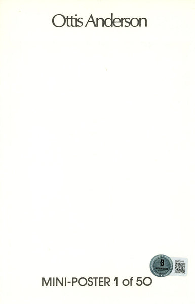 The number in the listing title is just an inventory sku for our records and is not the authentication number. This is the exact item that you will receive so please see pictures for condition. This is a mini poster measuring 8.5" x 5.5" that was personally autographed by Ottis Anderson. Includes a certificate of authenticity from Beckett Authentication Services (BAS) and Denver Autographs.