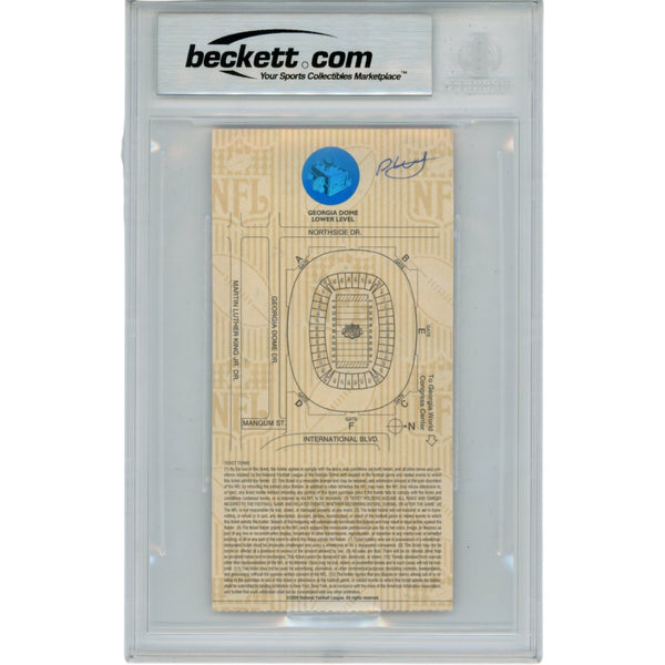 The number in the listing title is just an inventory sku for our records and is not the authentication number. The item pictured is the exact item you will receive, please see photos for condition. This is a Saint Louis Rams vs. Tennessee Titans January 30, 2000 Super Bowl XXXIV Section 109 Slabbed Ticket Stub that was personally autographed by Kurt Warner includes "SB XXXIV MVP" inscription. Includes a certificate of authenticity / hologram from Beckett Authentication Services (BAS) and Denver Autographs. FREE SHIPPING within the USA on orders over $10!