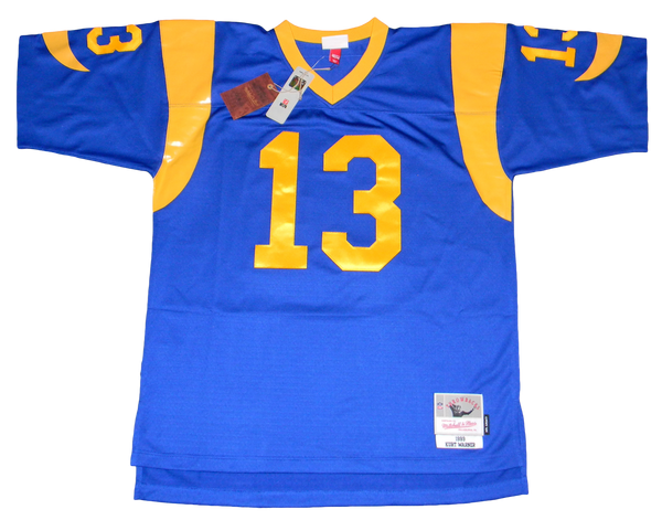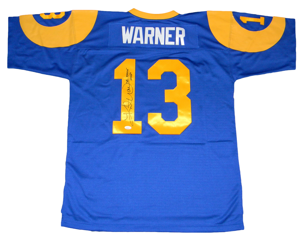 KURT WARNER SIGNED ST LOUIS RAMS #13 MITCHELL & NESS JERSEY JSA W/ SB XXXIV MVP