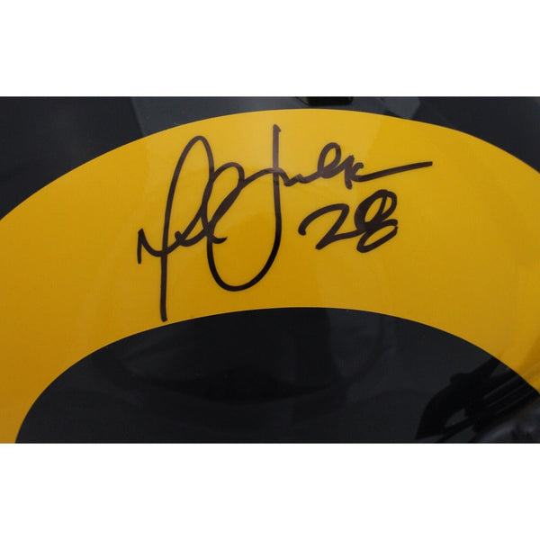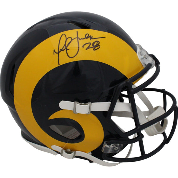 The number in the listing title is just an inventory sku for our records and is not the authentication number. The item pictured is a stock photo unless otherwise noted. This is a Los Angeles Rams Full Size Throwback '81-'99 Authentic Helmet that was personally autographed by Marshall Faulk. Includes a certificate of authenticity from Beckett Grading Services (BAS) and Denver Autographs.