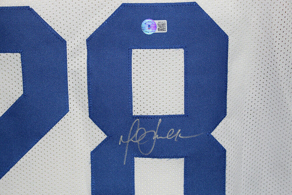 Marshall Faulk Autographed/Signed Pro Style TB White XL Jersey Beckett 35507 The number in the listing title is just an inventory sku for our records and is not the authentication number. The item pictured is a stock photo unless otherwise noted. This is a custom pro style white XL jersey with sewn on name and numbers that was personally autographed by Marshall Faulk. Includes a certificate of authenticity from Beckett Authentication Services (BAS) and Denver Autographs.