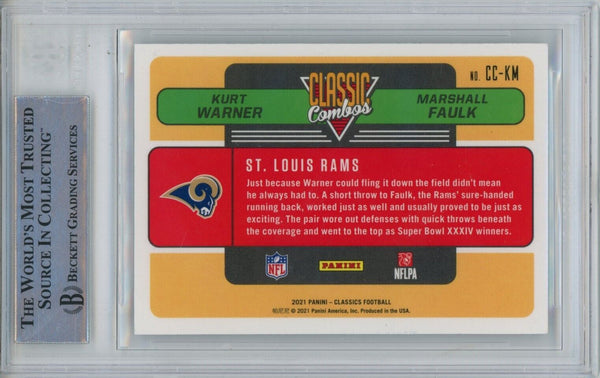 The number in the listing title is just an inventory sku for our records and is not the authentication number. The item pictured is a stock photo unless otherwise noted. This is a 2021 Panini Classics Combo slabbed trading card that was personally autographed by Marshall Faulk and Kurt Warner. Includes a certificate of authenticity from Beckett Authentication Services (BAS) and Denver Autographs.FREE SHIPPING within the USA on orders over $10!