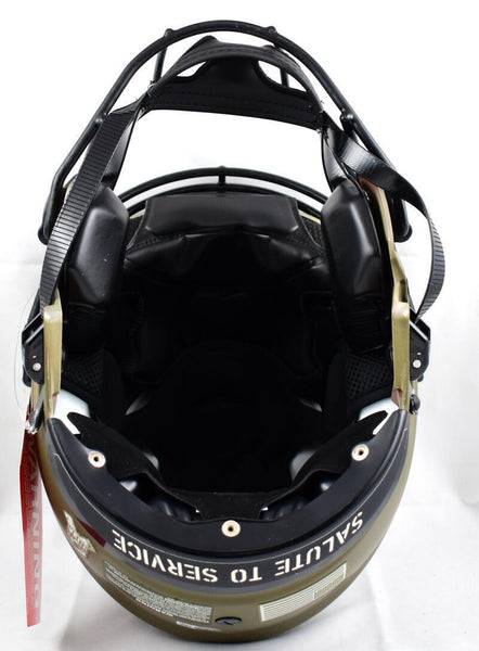 Marshall Faulk Signed Rams F/S Salute to Service Speed Flex Helmet w/HOF- Beckett W Hologram *Yellow This is a Marshall Faulk of the Rams hand autographed Riddell Football full size Salute to Service Speed Flex Authentic helmet inscribed with "HOF 20XI". This item has a Beckett Witnessed Authentication, which comes with a numbered sticker hologram and a QR code for verification. You can view this item on the Beckett Authentication website, it shows when and where the item was signed. It was signed either at a public autograph appearance or a private signing. This is a stock photo of the item. Although you may not receive this exact item, the item you receive is virtually identical, brand new, and in great shape.