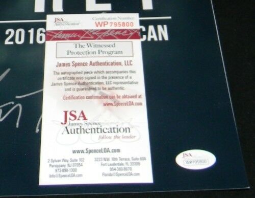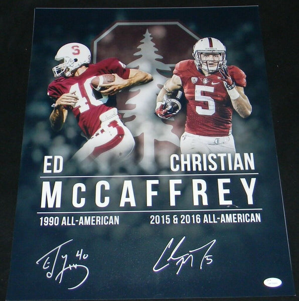 Ed and Christian McCaffrey have each hand signed this 16x20 photo at a private signing. This item comes with a certificate of authenticity (COA) from JSA - James Spence Authentication and was signed in the presence of one of their representatives. You will receive a serial-numbered COA along with a matching serial-numbered sticker on the photo. The authenticity can be verified online by entering the serial number.Item pictured may not be the exact item you will receive. It will be similar quality, and we guarantee your satisfaction.