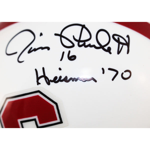 The number in the listing title is just an inventory sku for our records and is not the authentication number. The item pictured is the exact item you will receive, please see photos for condition. This is a Stanford Cardinal VSR4 Mini Helmet that was personally autographed by Jim Plunkett includes "Heisman '70" inscription. Includes a certificate of authenticity from Beckett Authentication Services (BAS) and Denver Autographs. FREE SHIPPING within the USA on orders over $10!