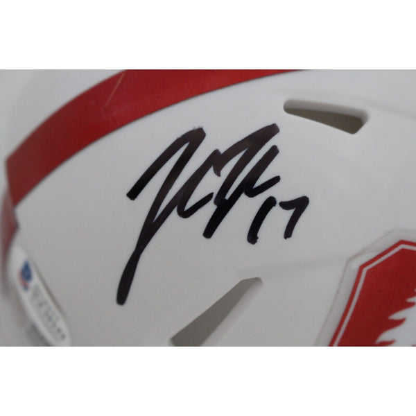 The number in the listing title is just an inventory sku for our records and is not the authentication number. The item pictured is the exact item you will receive, please see photos for condition. This is a Stanford Cardinal Speed Mini Helmet that was personally autographed by John Elway, John Lynch, and James Lofton. Includes a certificate of authenticity from Beckett Grading Services (BAS) and Denver Autographs.