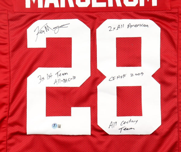 Custom on-field style jersey. Everything sewn on, size XL. Hand-signed and inscribed by Ken Margerum..The lot / autograph(s) includes an official Beckett Authentication Services serially-numbered hologram and QR Code Card for authenticity purposes. The signing of this item was witnessed by Beckett.Authentication: Beckett Hologram with QR Code card