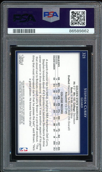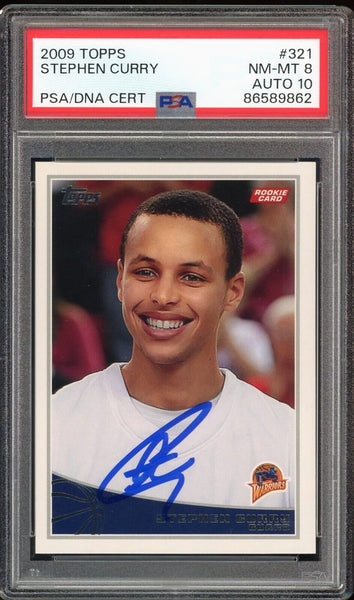 2009 Topps #321 Stephen Curry RC Rookie On Card PSA 8/10 Auto NM Warriors