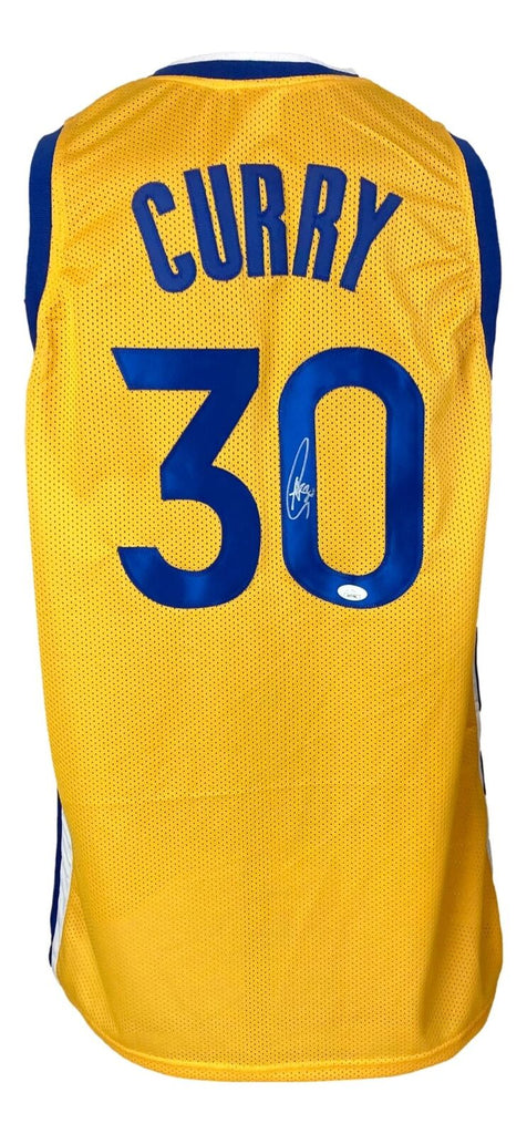 Featured is a Stephen Curry signed custom basketball jersey. This jersey has been hand signed by Curry and comes with the JSA hologram and certificate of authenticity. This jersey features professionally sewn letters and numbers and is size XL. This jersey features no team tags or emblems and is intended as a sports collectible. This jersey would make a great addition to any sports memorabilia collection!. SPECIFICATIONS Autographed By: Stephen Curry Team: Golden State Warriors Sport: Basketball Authentication: James Spence Authentication (JSA)