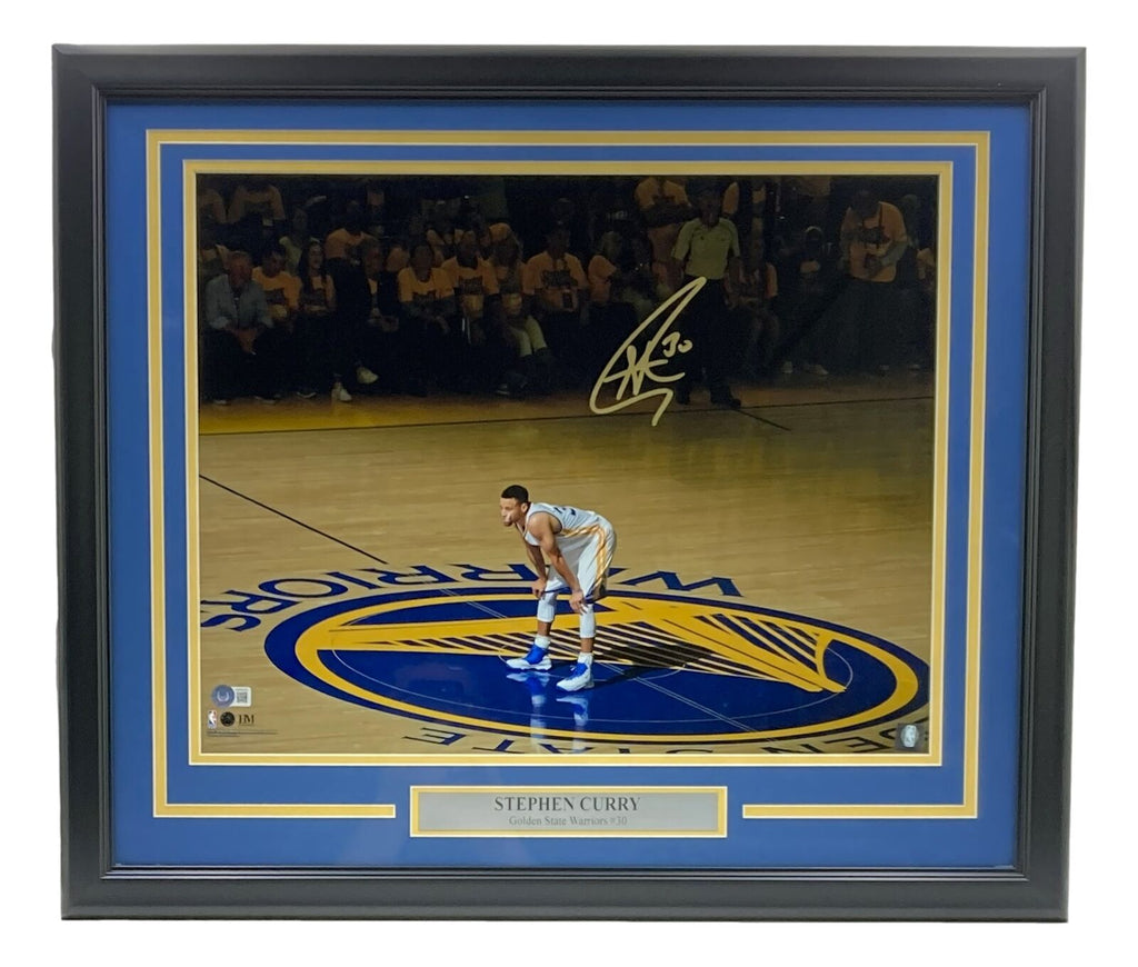 Featured is a Stephen Curry signed 16x20 photo. This photo was hand signed by Curry and comes with the Beckett hologram and letter of authentication. This photo has been professionally framed and matted and is approximately 22x27. This item would make a great addition to any sports memorabilia collection. SPECIFICATIONS Autographed By: Stephen Curry Team: Golden State Warriors Sport: Basketball-NBA Authentication: Beckett Grading Services