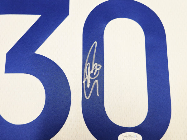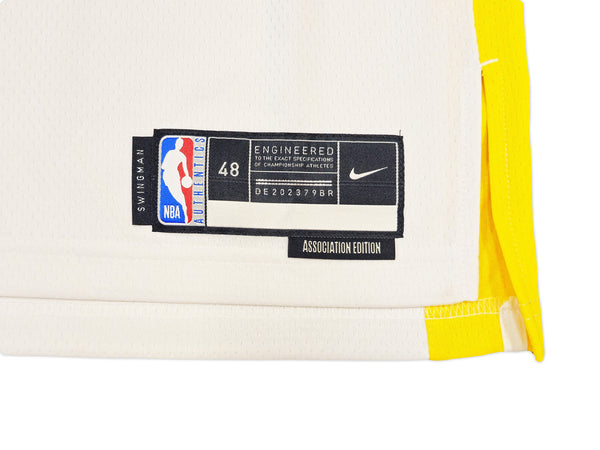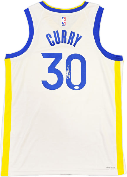 This is a White Nike Golden State Warriors Swingman Association Edition Jersey that has been hand signed by Stephen Curry. This jersey is Size 48. This item has been certified authentic by JSA and comes with their tamper-proof hologram and matching certificate of authenticity.