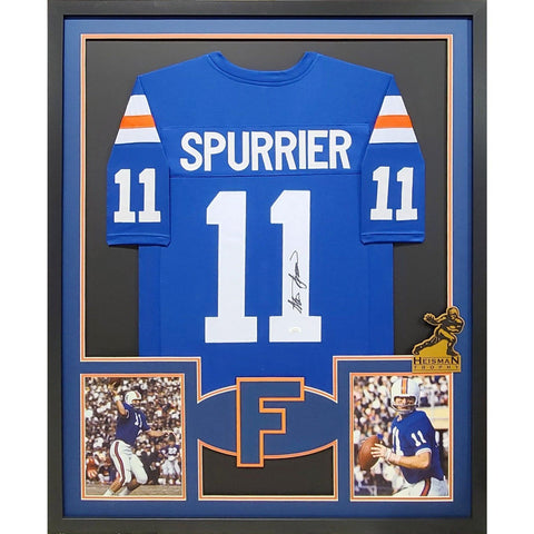 STEVE SPURRIER AUTOGRAPHED SIGNED FLORIDA GATORS #11 BLUE JERSEY W/ 66 HEISMAN
