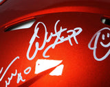 This is a hand autographed Riddell football Flash Speed Authentic full-size helmet. Hand autographed by Mike Alstott, Dexter Jackson, Warren Sapp, and Derrick Brooks of the Tampa Bay Buccaneers. This item has a Beckett Witnessed Authentication, which comes with a numbered sticker hologram and a QR code for verification. You can view this item on the Beckett Authentication website, it shows when and where the item was signed. It was signed either at a public autograph appearance or a private signing. This photo is the exact item that you will be receiving. Please see pictures for further details. We appreciate your interest in our items, and we hope to provide you with a smooth and professional transaction. This is a hand autographed Riddell football Flash Speed Authentic full-size helmet. Hand autographed by Mike Alstott, Dexter Jackson, Warren Sapp, and Derrick Brooks of the Tampa Bay Buccaneers. This item has a Beckett Witnessed Authentication, which comes with a numbered sticker hologram and a QR code for verification. You can view this item on the Beckett Authentication website, it shows when and where the item was signed. It was signed either at a public autograph appearance or a private signing. This photo is the exact item that you will be receiving. Please see pictures for further details. We appreciate your interest in our items, and we hope to provide you with a smooth and professional transaction.