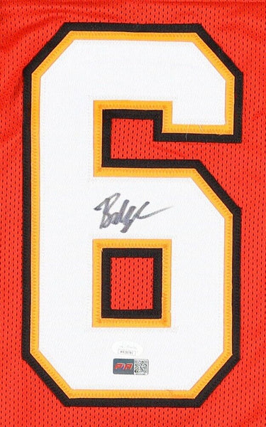 Custom on-field style jersey. Everything is sewn on, size XL. Hand-signed by Baker Mayfield. The autograph includes an official James Spence Authentication (JSA) hologram & QR Code Card for authenticity purposes. The signing of this item was witnessed by JSA.Authentication: JSA Hologram & QR Code card