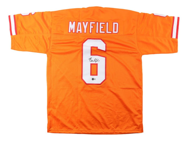 Featured is a Baker Mayfield signed custom football jersey. This jersey has been hand signed by Mayfield and comes with the Beckett hologram and certificate of authenticity. This jersey features professionally sewn letters and numbers and is size XL. This jersey has no team tags or emblems and is intended as a sports collectible. This jersey would make a great addition to any sports memorabilia collection!. SPECIFICATIONS Autographed By: Baker Mayfield Team: Tampa Bay Buccaneers Sport: Football Authentication: Beckett Grading Services