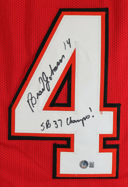 Custom on-field style jersey. Everything is sewn on, size XL. Has been hand-signed by Brad Johnson (Super Bowl XXXVII Champion quarterback.The lot / autograph(s) includes an official Beckett Authentication Services serially-numbered hologram for authenticity purposes. The signing of this item was witnessed by Beckett.Authentication: Beckett Hologram