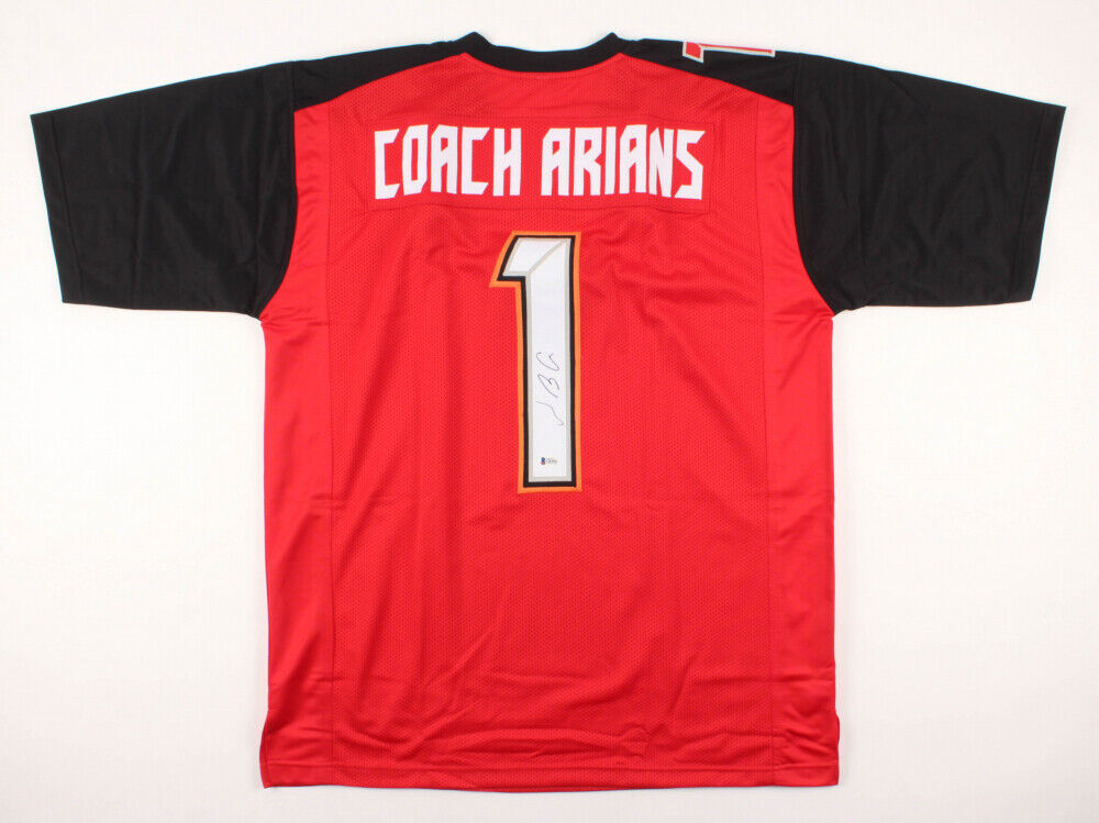 Custom on-field style jersey. Everything sewn on, size XL. Hand-signed in black felt-tip pen by Bruce Arians (Coach). The lot / autograph(s) includes an official Beckett Authentication Services serially numbered hologram and matching COA for authenticity purposes.Authentication: Beckett COA