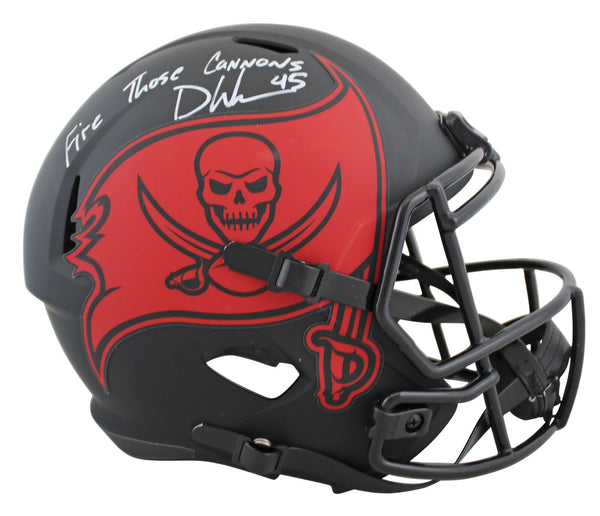 This Autographed Alternate Eclipse Riddell Full Size Speed Rep Helmet with the inscription of "Fire Those Cannons" has been Personally Signed by Devin White of the Tampa Bay Buccaneers. This item is 100% Authentic to include a Certificate of Authenticity (COA) / hologram by Beckett Authentication Services. This is a BAS Witnessed Protection Program item which means a Beckett Authentication Service representative was present when this item was being signed. This is a stock item. We conducted an autograph signing with Devin White and we have several of these available. The one you will receive will be of equal quality to the one pictured. This item can be verified through BAS Witnessed.