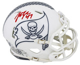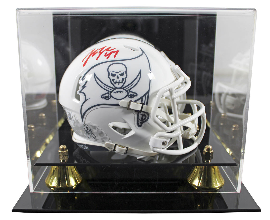 This Autographed Alternate 2024 Salute To Service III Speed Mini Helmet W/ Uv Mirrored Back Acrylic Display Case has been Personally Signed by John Lynch of the Tampa Bay Buccaneers. This item is 100% Authentic to include a hologram by Beckett Authentication Services. This item will come with an affixed Beckett Authentication Services (BAS) authentication sticker, which includes a scannable QR code to verify authenticity. Please note that Beckett no longer provides serial-numbered COA cards, and the attached BAS sticker will serve as the complete authentication for this item. This is a BAS Witnessed Protection Program item which means a Beckett Authentication Service representative was present when this item was being signed. We conducted an autograph signing with John Lynch where multiples of the same item were signed. While the photographs are representative of this item, the size, placement and strength of the signature may vary. Each item is hand signed, therefore, each autograph is unique. This item can be verified through BAS Witnessed.
