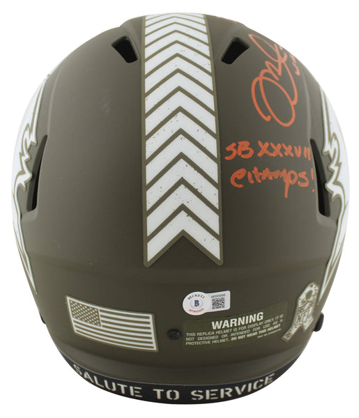 Bucs Mike Alstott 3x Insc Signed Salute To Service F/S Speed Rep Helmet BAS Wit