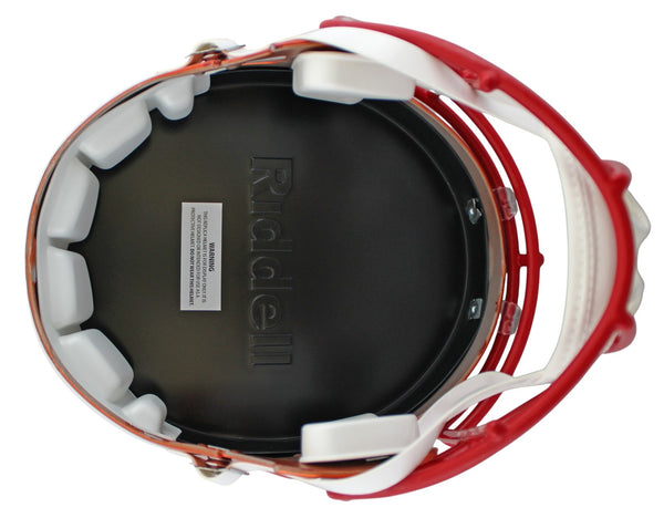 This Autographed Alternate Flash Riddell Full Size Speed Rep Helmet W/ Uv Mirrored Back Acrylic Display Case with the inscription of "SB XXXVII Champs" has been Personally Signed by Mike Alstott of the Tampa Bay Buccaneers. This item is 100% Authentic to include a hologram by Beckett Authentication Services. This item will come with an affixed Beckett Authentication Services (BAS) authentication sticker, which includes a scannable QR code to verify authenticity. Please note that Beckett no longer provides serial-numbered COA cards, and the attached BAS sticker will serve as the complete authentication for this item. This is a BAS Witnessed Protection Program item which means a Beckett Authentication Service representative was present when this item was being signed. We conducted an autograph signing with Mike Alstott where multiples of the same item were signed. While the photographs are representative of this item, the size, placement and strength of the signature may vary. Each item is hand signed, therefore, each autograph is unique. This item can be verified through BAS Witnessed.