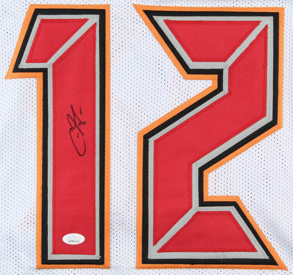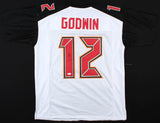 Custom on-field style jersey. Everything sewn on, size XL. Hand-signed in black felt-tip pen by Chris Godwin. The autograph includes an official James Spence Authentication (JSA) hologram and matching COA for authenticity purposes. The signing of this item was witnessed by JSA.Authentication: JSA COACustom on-field style jerseys are a more affordable option for autograph seekers. These jerseys do not have any brand name or tags and are made in the Philippines. They feature stitched on names and numbers and are made to look very similar to the on-field jerseys that the players wear. These custom jerseys are very commonly used in the memorabilia industry.