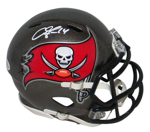 Chris Godwin, Pro Bowl wide receiver for the Tampa Bay Buccaneers, has hand signed this Bucs Riddell Speed mini helmet at a private signing. This item comes with a certificate of authenticity (COA) from Beckett Authentication Services and was signed in the presence of one of their representatives. You will receive a serial-numbered COA along with a matching serial-numbered sticker on the helmet. The authenticity can be verified online by entering the serial number.Item pictured may not be the exact item you will receive. It will be similar quality, and we guarantee your satisfaction.