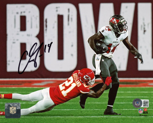 Chris Godwin, star wide receiver for the Tampa Bay Buccaneers, has hand signed this 8x10 photo at a private signing. This item is authenticated by Beckett Authentication Services and was signed in the presence of one of their representatives. Their tamper-evident hologram featuring a QR code and serial number is on the item. The authenticity can be verified online by entering the serial number or scanning the QR code.Item pictured may not be the exact item you will receive. It will be similar quality, and we guarantee your satisfaction.