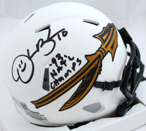Derrick Brooks Autographed Florida State Lunar Speed Mini Helmet w/NAT'L Champs-Beckett W Hologram This is a Derrick Brooks of Florida State Seminoles hand autographed Riddell football Lunar speed mini helmet. Inscribed 93 Natl Champs. This item has a Beckett Witnessed Authentication, which comes with a numbered sticker hologram and a QR code for verification. You can view this item on the Beckett website. It was signed either at a public autograph appearance or a private signing. This is a stock photo of the item. Although you may not receive this exact item, the item you receive is virtually identical, brand new, and in great shape.