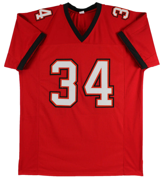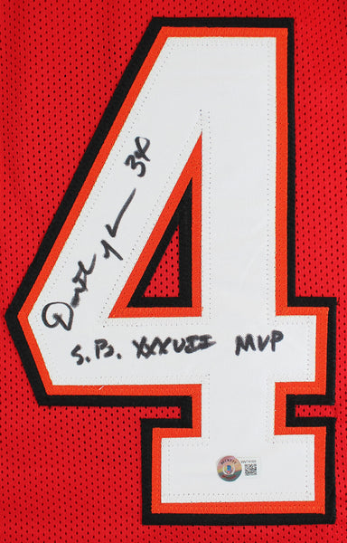 This Autographed Red Pro Style Jersey with the inscription of "SB XXXVII MVP" has been Personally Signed by Dexter Jackson of the Tampa Bay Buccaneers. This item is 100% Authentic to include a hologram by Beckett Authentication Services. This item will come with the new Beckett Authentication hologram that has a scannable QR code rather than the traditional COA. If you would like to have a COA, you are welcome to reach out to Beckett for a printed certification once you receive your item. This is a BAS Witnessed Protection Program item which means a Beckett Authentication Service representative was present when this item was being signed. We conducted an autograph signing with Dexter Jackson where multiples of the same item were signed. While the photographs are representative of this item, the size, placement and strength of the signature may vary. Each item is hand signed, therefore, each autograph is unique. This item can be verified through BAS Witnessed. This is a X-Large sized, non-branded, custom-stitched Jersey.