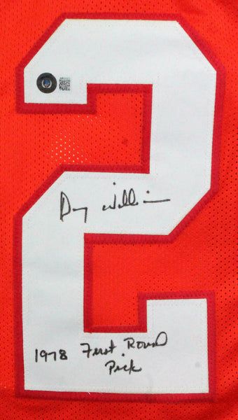 Doug Williams Autographed Orange Pro Style Jersey w/Insc.-Beckett W Hologram *Black THIS IS NOT AN NFL JERSEY. THIS HAS NO TAGS, NO LOGOS, NO EMBLEMS. This is a Hand Autographed Jersey of Doug Williams. Inscribed 1978 First Round Pick. This is a Custom Made (Non Name Brand) Authentic Style (Stitched Letters and Numbers) Jersey. This item has a Beckett Witnessed Authentication, which Comes with a Beckett #'ed Sticker hologram and a generic Beckett COA. You can view this item on the Beckett website, it shows when and where the item was signed. It was signed either at a public autograph appearance or a Private Signing. This is a stock photo of the item. Although you may not receive this exact item, the item you receive is virtually identical and brand new in great shape. Jersey size is XL.