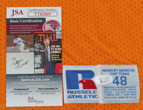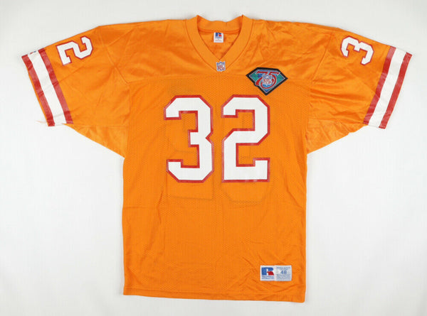 Russell Athletic on-field style jersey. Everything printed on, size 48. Hand-signed by Errict Rhett (Tampa Bay Buccaneers). Please see photos for more details regarding the condition of the jersey.The lot / autograph(s) includes an official James Spence Authentication (JSA) hologram and matching COA for authenticity purposes.Authentication: JSA COA