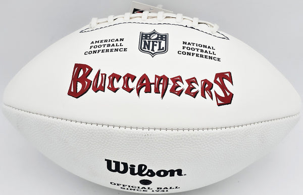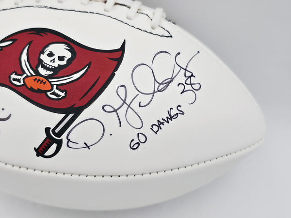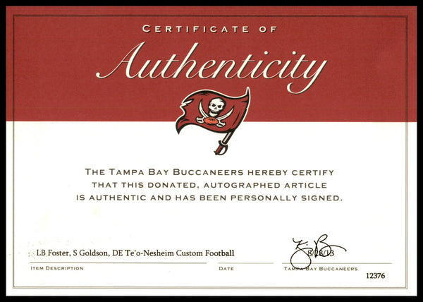 This is an Tampa Bay Buccaneers Official White Logo NFL Football that has been hand signed by Mason Foster, Dashon Goldson & Daniel Te'o Nesheim. It has been certified authentic by the Tampa Bay Buccaneers (TB).