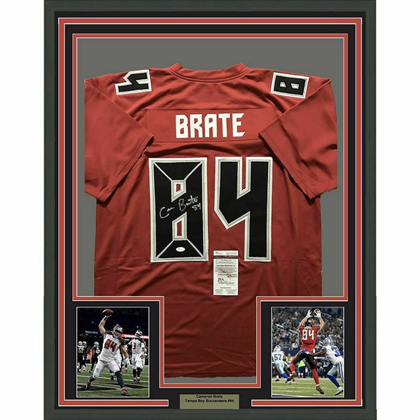 FRAMED Autographed/Signed CAMERON BRATE 33x42 Tampa Color Rush Jersey JSA COA The item is professionally framed & matted with two 8x10 photos, measures 33"x42" and is ready to be hung in your man cave! NOTE: COA card will be mounted on the back of the frame, not inside it on top of the jersey as seen in the picture. Please allow up to 5 business days for the item to be framed, packaged safely, and picked up by FedEx. Photo and matting requests can be made.