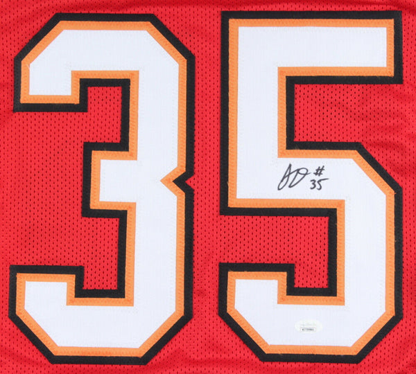 Custom on-field style jersey. Everything sewn on, size XL. Hand-signed by Jamel Dean.Please note, the jersey shows signs of fraying around the numbers. See photos for details.The lot / autograph(s) includes an official James Spence Authentication (JSA) hologram and matching COA for authenticity purposes. The signing of this item was witnessed by JSA.Authentication: JSA COA