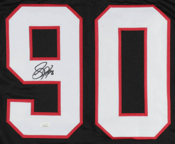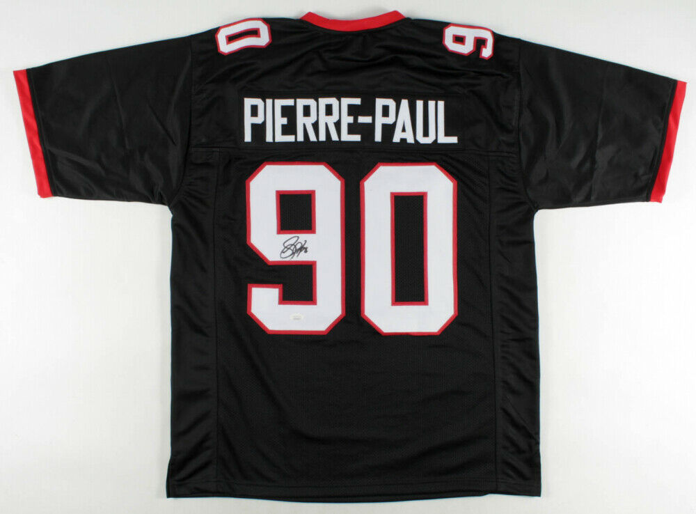 Custom on-field style jersey. Everything is sewn on, size XL. Hand-signed in black paint pen by Jason Pierre-Paul.The lot / autograph(s) includes an official James Spence Authentication (JSA) hologram and matching COA for authenticity purposes. The signing of this item was witnessed by JSA.Authentication: JSA Witnessed COA