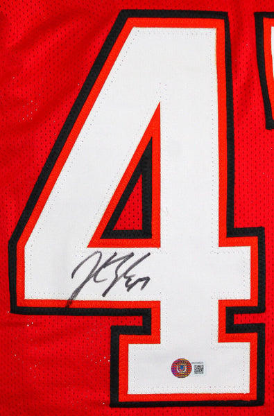 John Lynch Autographed Red Pro Style Jersey- Beckett W Hologram *Black THIS IS NOT AN NFL JERSEY. THIS HAS NO TAGS, NO LOGOS, NO EMBLEMS. This is a John Lynch of the Tampa Bay Buccaneers hand autographed custom made (non name brand) authentic style (stitched letters and numbers) jersey. This item has a Beckett Witnessed Authentication, which comes with a numbered hologram and a QR code for verification. You can view this item on the Beckett Authentication website, it shows when and where the item was signed. It was signed either at a public autograph appearance or a private signing. This is a stock photo of the item. Although you may not receive this exact item, the item you receive is virtually identical, brand new, and in great shape. Jersey size is XL.