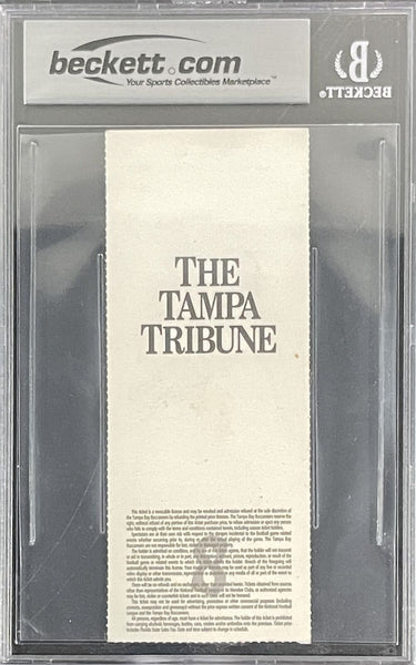 John Lynch Signed Tampa Bay Buccaneers Ticket 12/6/1999 Slab Beckett 37036 The number in the listing title is just an inventory sku for our records and is not the authentication number. This is the exact item that you will receive so please see pictures for condition. This is a 12/06/1999 ticket stub that was personally autographed by John Lynch. This has been professionally slabbed by Beckett Authentication Services (BAS) and includes a certificate of authenticity from Denver Autographs.