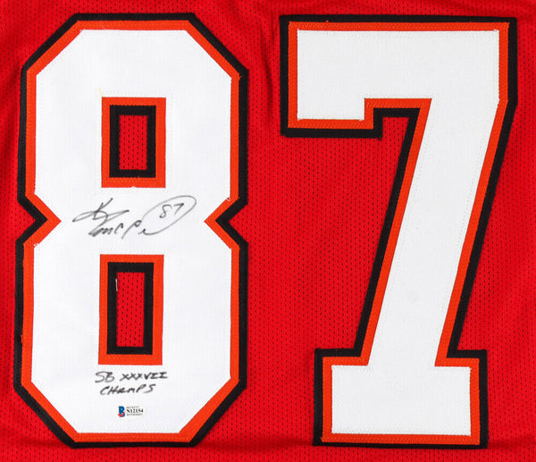 Custom on-field style jersey. Everything sewn on, size XL. Hand-signed in black paint pen by Keenan McCardell. The lot / autograph(s) includes an official Beckett Authentication Services serially numbered hologram and matching COA for authenticity purposes. The signing of this item was witnessed by BeckettAuthentication: Beckett COA