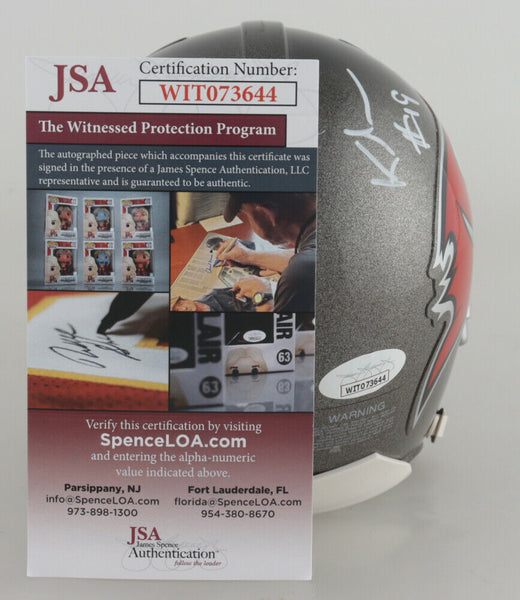 Riddell Tampa Bay Buccaneers mini helmet has been hand-signed by Keyshawn Johnson.The lot / autograph(s) includes an official James Spence Authentication (JSA) hologram and matching COA for authenticity purposes. The signing of this item was witnessed by JSA.Authentication: JSA COA