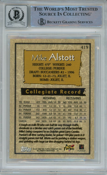 Mike Alstott Autographed 1996 Topps #419 Trading Card Slabbed Beckett 40659