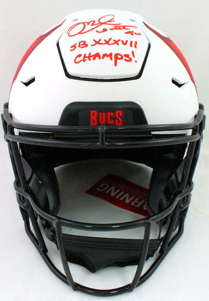 Mike Alstott Autographed Buccaneers SpeedFlex Lunar FS Helmet SB- Beckett W *Red This is a Mike Alstott of the Tampa Bay Buccaneers hand autographed Riddell football authentic SpeedFlex Lunar full size helmet inscribed with "SB Champs". This item has a Beckett Witnessed Authentication, which comes with a numbered sticker and a matching Beckett Certificate of Authenticity. You can view this item on the Beckett Authentication website, it shows when and where the item was signed. It was signed either at a public autograph appearance or a private signing. This is a stock photo of the item. Although you may not receive this exact item, the item you receive is virtually identical, brand new, and in great shape.