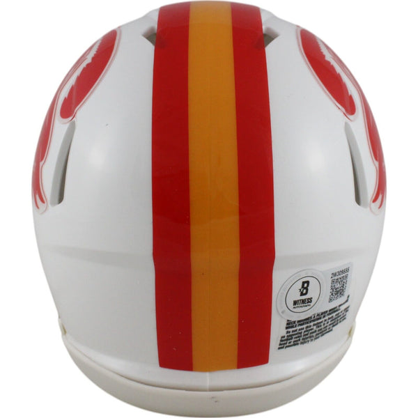 The number in the listing title is just an inventory sku for our records and is not the authentication number. The item pictured is a stock photo unless otherwise noted. This is a Tampa Bay Buccaneers Throwback 1976-1996 Speed Mini Helmet that was personally autographed by Mike Alstott. Includes a certificate of authenticity from Beckett Authentication Services (BAS) and Denver Autographs.