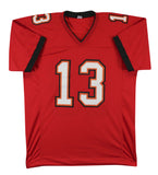 This Autographed Red Pro Style Jersey has been Personally Signed by Mike Evans of the Tampa Bay Buccaneers. This item is 100% Authentic to include a hologram by Beckett Authentication Services. This item will come with an affixed Beckett Authentication Services (BAS) authentication sticker, which includes a scannable QR code to verify authenticity. Please note that Beckett no longer provides serial-numbered COA cards, and the attached BAS sticker will serve as the complete authentication for this item. This is a BAS Witnessed Protection Program item which means a Beckett Authentication Service representative was present when this item was being signed. We conducted an autograph signing with Mike Evans where multiples of the same item were signed. While the photographs are representative of this item, the size, placement and strength of the signature may vary. Each item is hand signed, therefore, each autograph is unique. This item can be verified through BAS Witnessed. This is a X-Large sized, non-branded, custom-stitched Jersey.